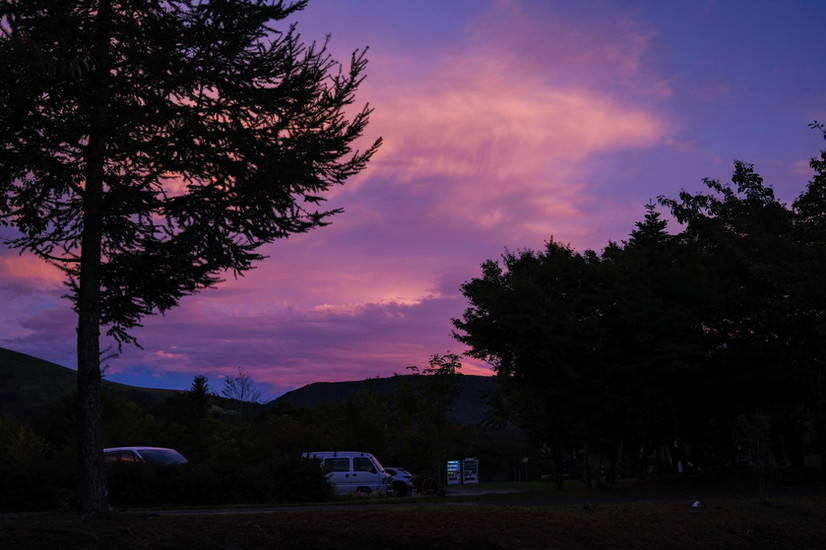 Als we even voor het raam blijven zitten, verschijnt er tot onze grote verbazing steeds meer van Fuji. Het is het einde van de dag, dus we sprinten naar buiten met een camera op zak en genieten van de mooiste zonsondergang van onze levens. We voelen ons onwijs gelukkig dat we Fuji überhaupt hebben mogen zien - in september is de kans vrij klein. Om dan ook nog zo'n indrukwekkend schouwspel van de lucht mee te mogen maken, daar heb ik geen woorden voor. We hebben denk ik wel een uur aan het meer staan fotograferen en genieten.