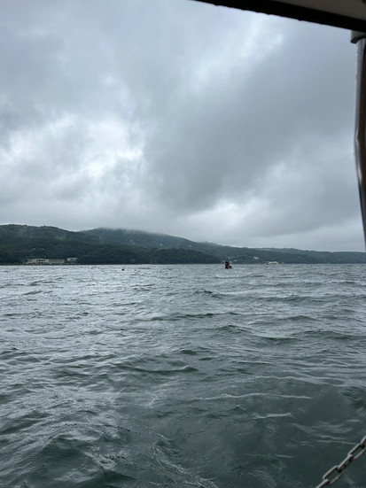 Na het ontbijt stappen we in de auto en rijden we een rondje om Lake Yamanako. Onderweg spotten we iets wat onze aandacht trekt: waterfietsen in de vorm van een zwaan - mƩt een hoedje op! Ondanks de regen zijn we vastberaden: wij gaan het meer op.